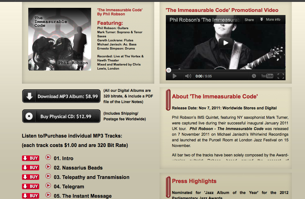 Check out guitarist Phil Robson’s Album page for his WWR release ‘The Immeasurable Code’ below, or to see it live, click HERE.
